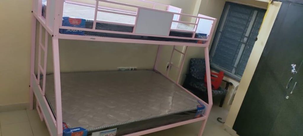 The Pink colour bunk bed customized with slide - The bunk bed is too good. It was very neatly packed with all necessary nuts and bolts. It was also easy to assemble it. The one and only problem is too late delivery. It took one month for us to receive the product. But worthy. Thank you