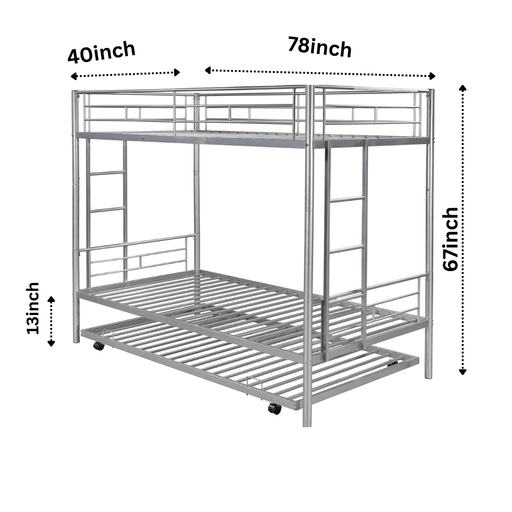 Sparkenzy Metal Bunk Bed with trundle -Heavy Made with CR Steel Heavy Gauge Pipe Powder Coated finishing with Scratch and Rust R...